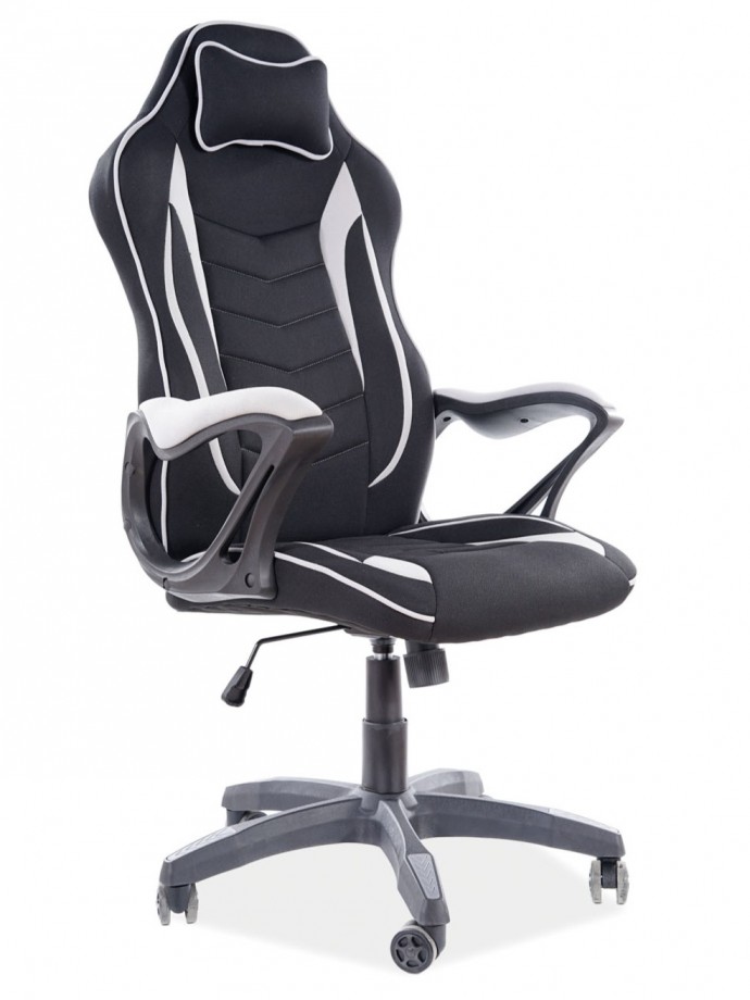Вращающееся кресло Zenvo от Signal мебель - интересное предложение для требовательных пользователей, ценящих комфорт и удобство. Высокая удобная спинка с изогнутой поясничной опорой обеспечивает удобное положение сидя и стабильную опору для спины. Игровое кресло оснащено мягкими подлокотниками, на которых мы можем поддерживать и расслаблять руки. Кресло, обитое тканью, обеспечивает хорошую циркуляцию воздуха. Изделие рекомендовано для современных интерьеров молодежной комнаты, офисов, квартир.