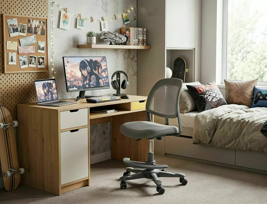 Офисное компьютерное кресло, сетка/мембранная ткань, цвет: серый, вращающаяся подставка для ног с регулировкой высоты.