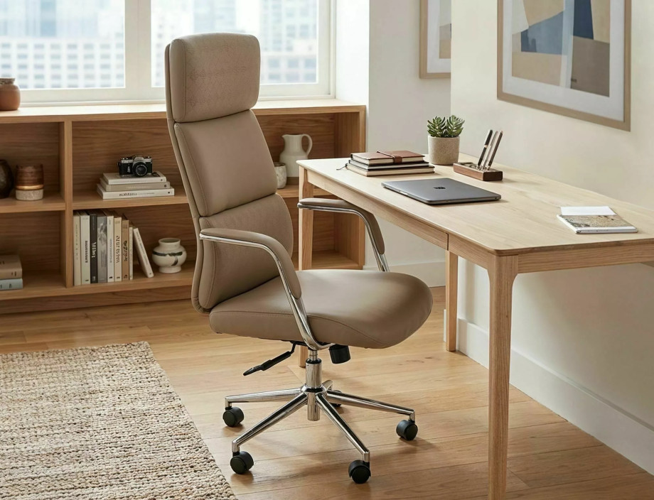 Кресло офисное компьютерное поворотное Q-03 Бежевая экокожа / Светло-серый каркас