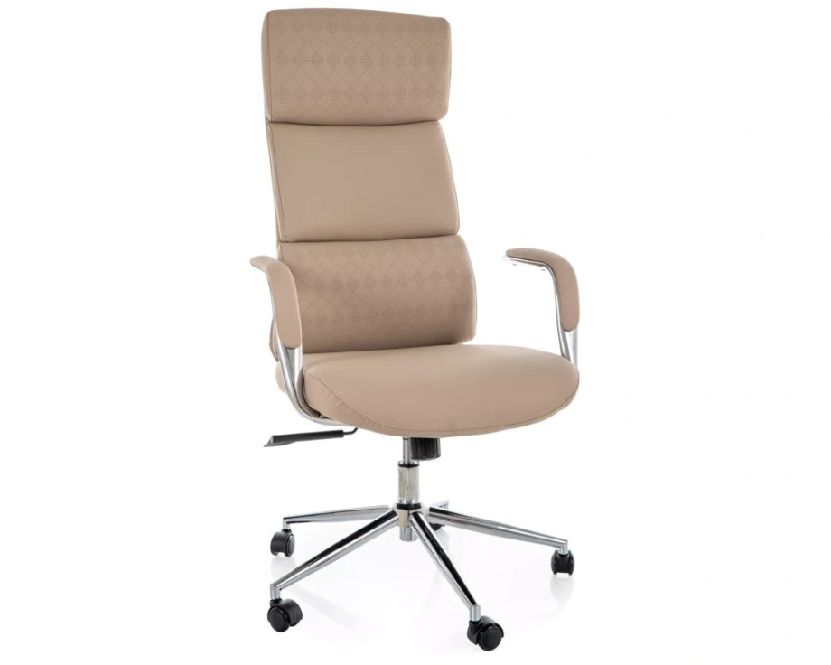 Офисное компьютерное кресло, экокожа, цвет: бежевый, мультиблок, фиксированные подлокотники.