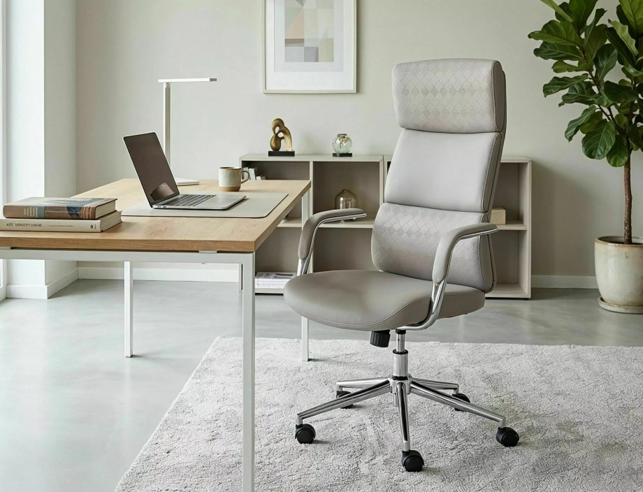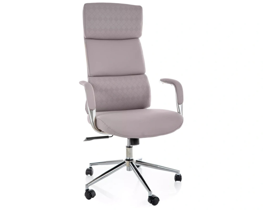 Кресло офисное компьютерное поворотное Q-03 Серая экокожа / Хром каркас