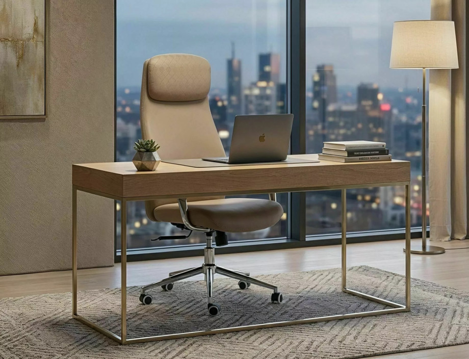 Офисное компьютерное кресло, экокожа, цвет: бежевый, мультиблок, регулируемый подголовник, фиксированные подлокотники.