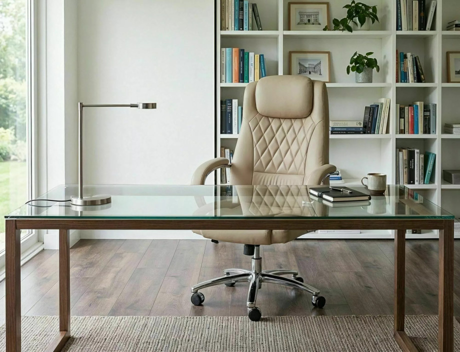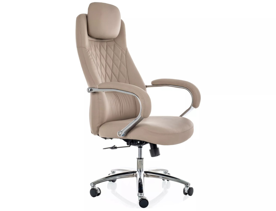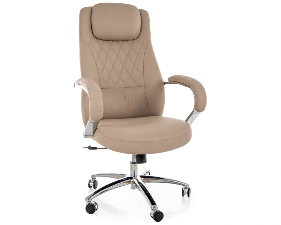 Кресло офисное компьютерное поворотное Q-07 Бежевая экокожа / Хром каркас