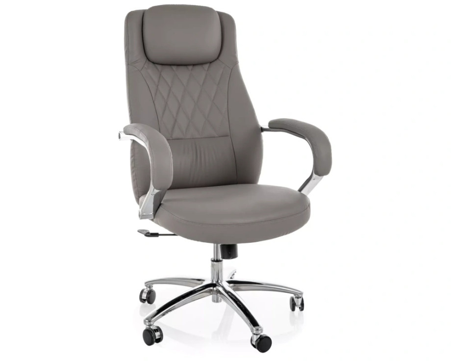 Кресло офисное компьютерное поворотное Q-07 Серая экокожа / Хром каркас