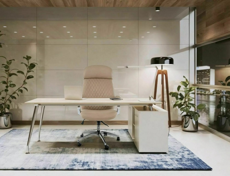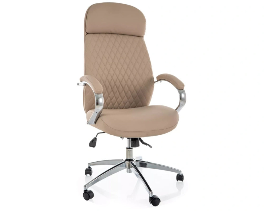 Кресло офисное компьютерное поворотное Q-09 Бежевая экокожа / Хром каркас