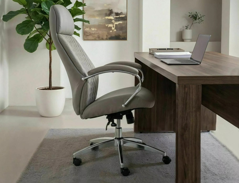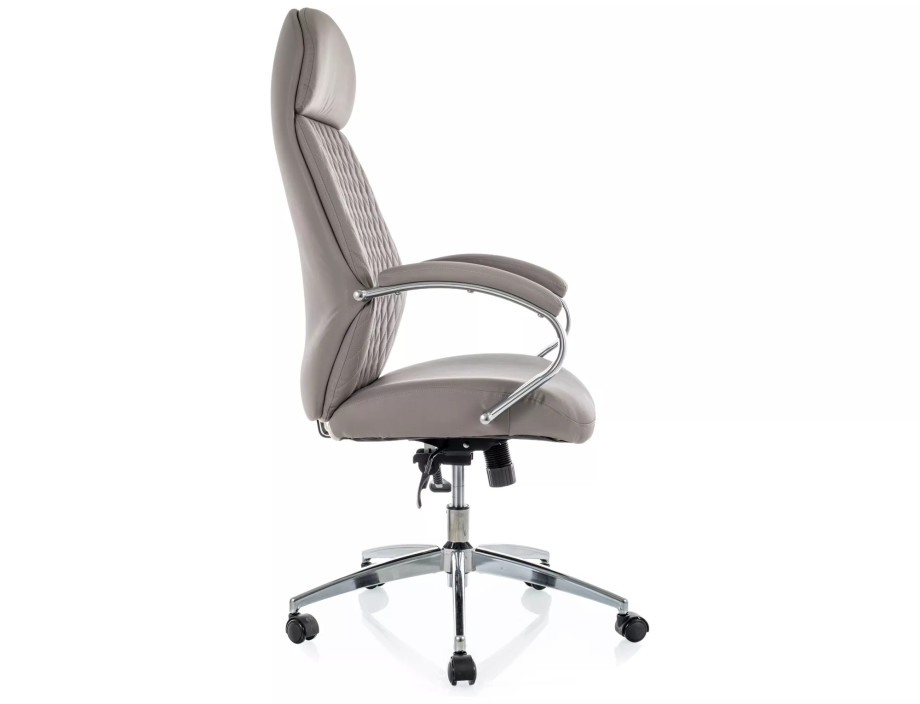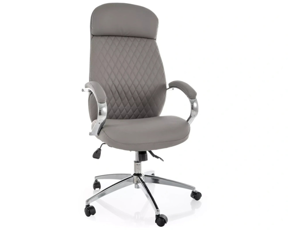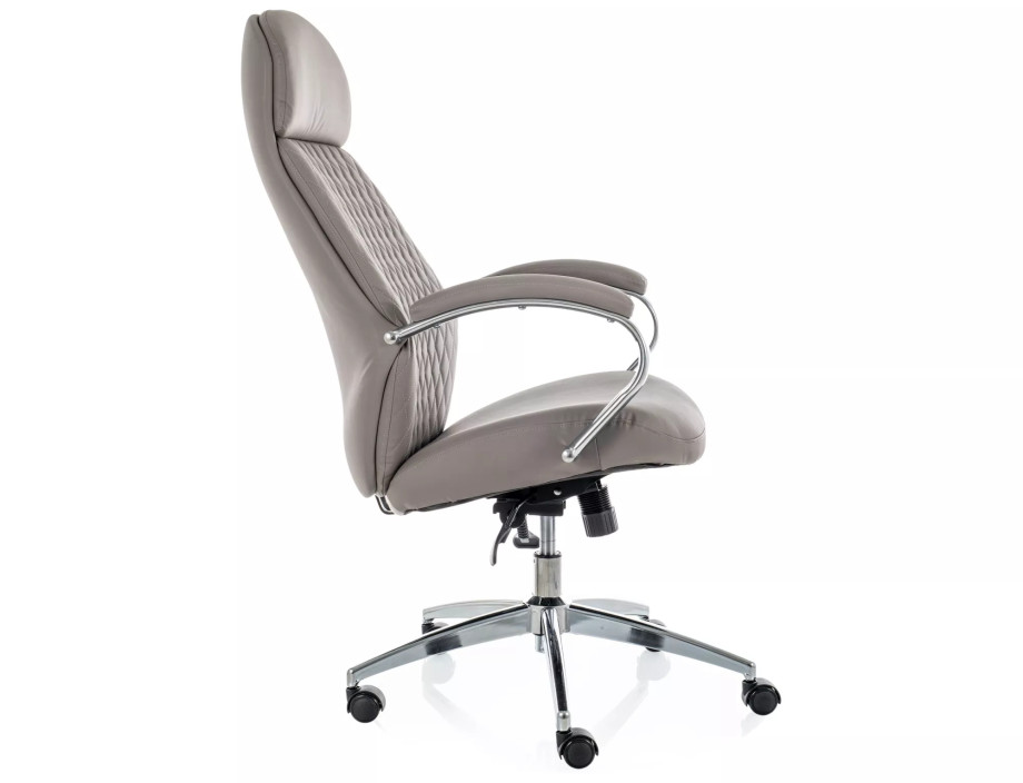 Кресло офисное компьютерное поворотное Q-09 Серая экокожа / Хром каркас
