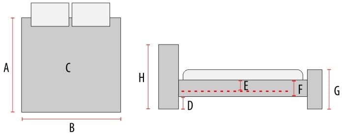 A -215, B -170, C -160x200, D -5, E -4, F -31, G -35, H -122 см