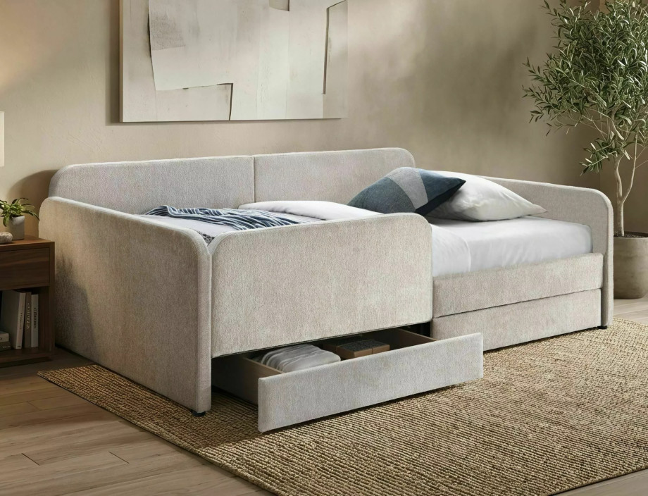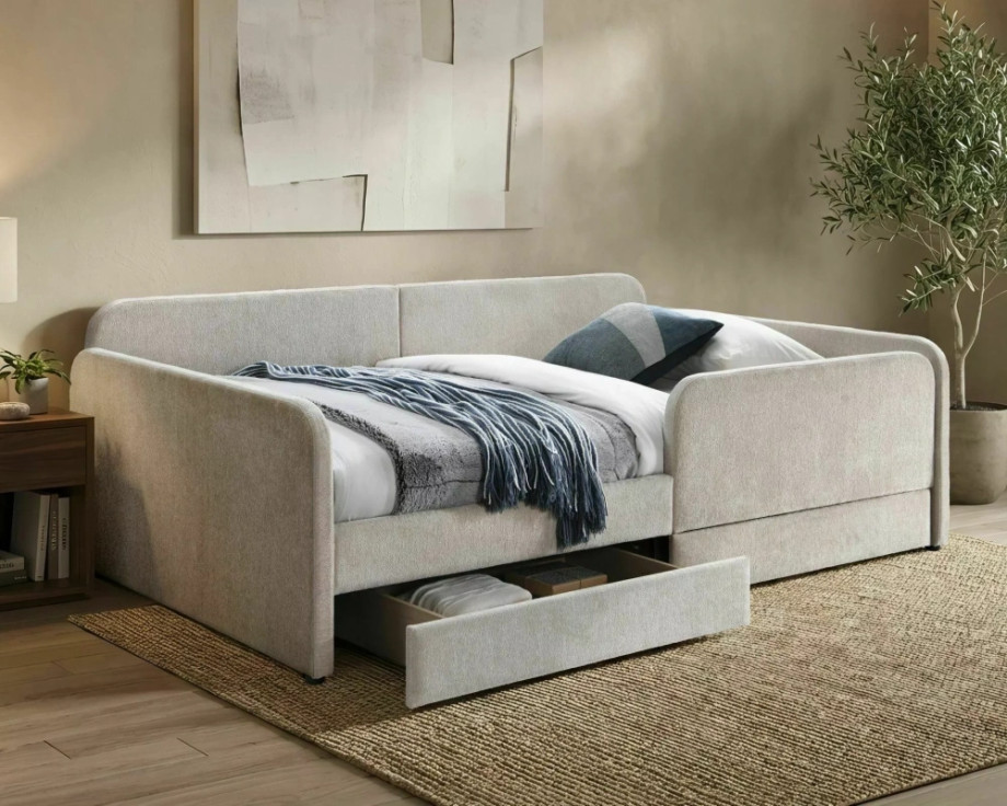Кровать односпальная мягкая Amelia Raven 120×200 Бежевая ткань