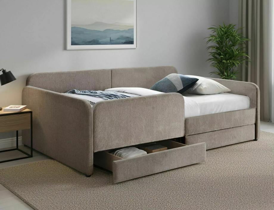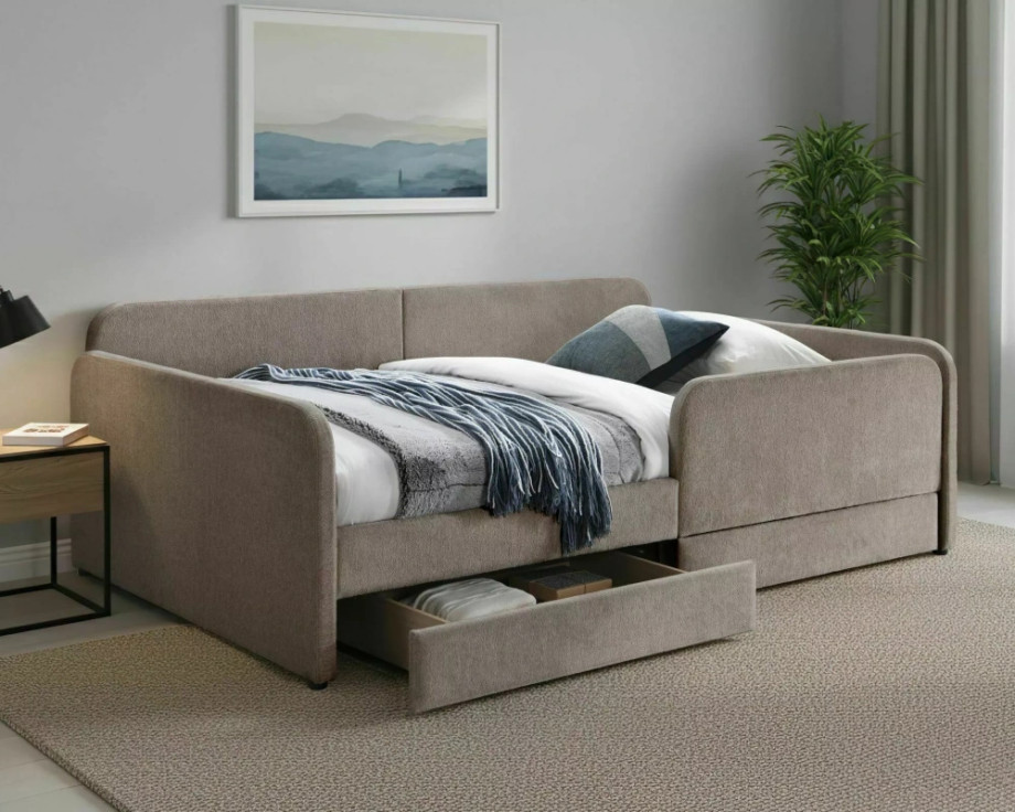 Кровать односпальная мягкая Amelia Raven 120×200 Темно-бежевая ткань