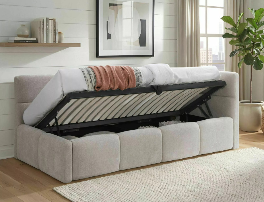 Кровать односпальная мягкая Emma Raven 90×200 Бежевая ткань