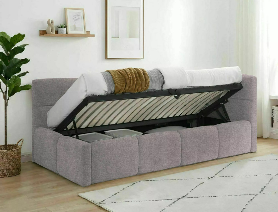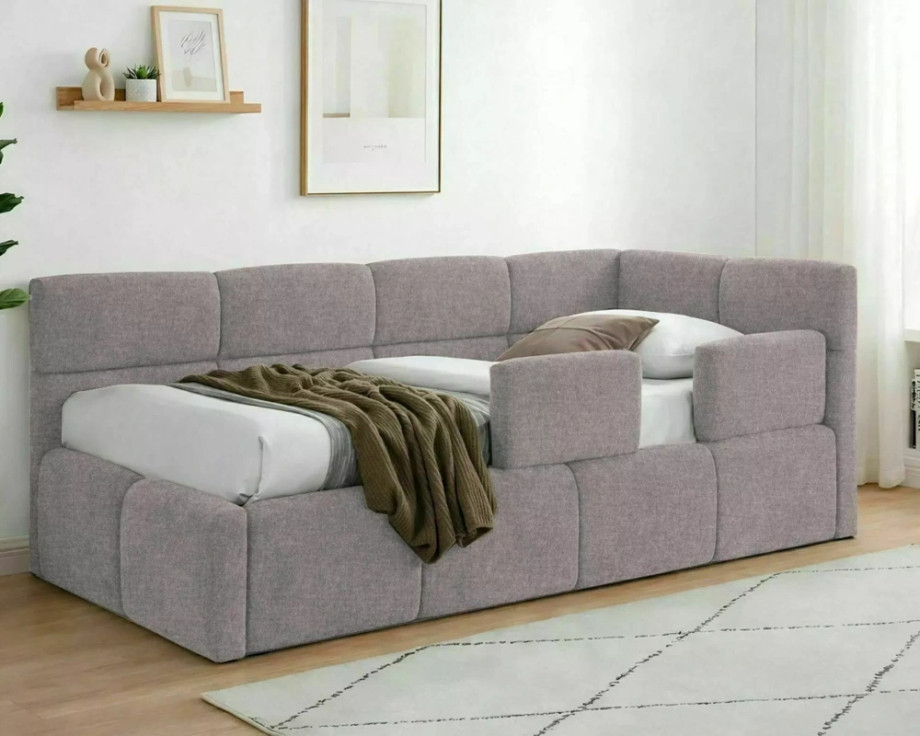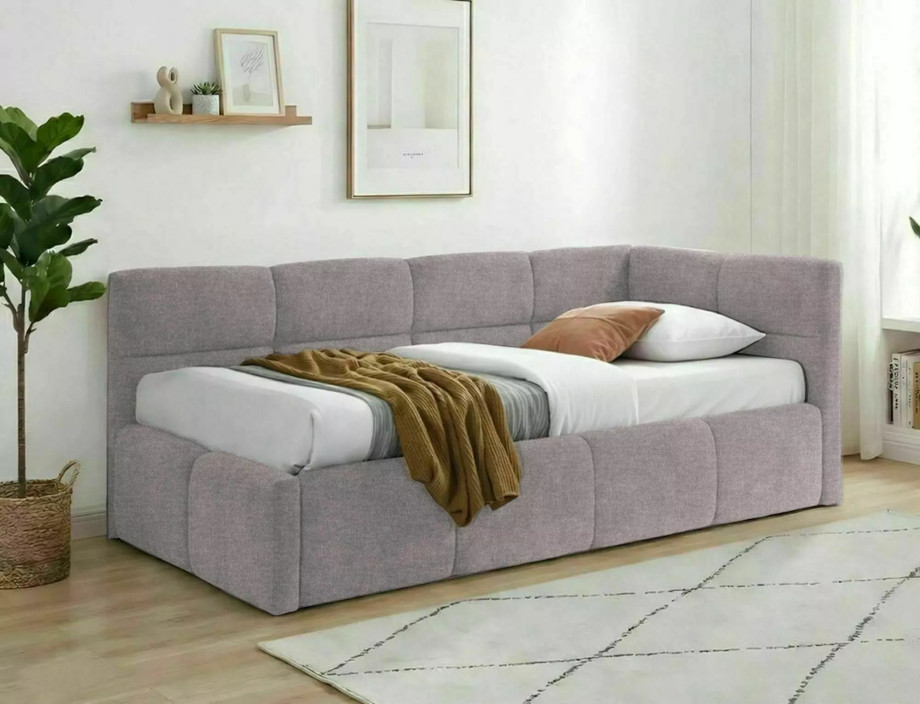 Кровать односпальная мягкая Emma Raven 90×200 Пудро-розовая ткань