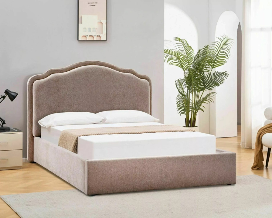 Кровать двухспальная мягкая Florencja Raven 140×200 Темно-бежевая ткань