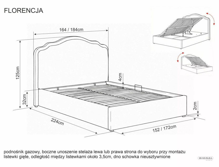 160x200, D – 2.5, E – 5, F – 35, G – 35, H – 90 см.