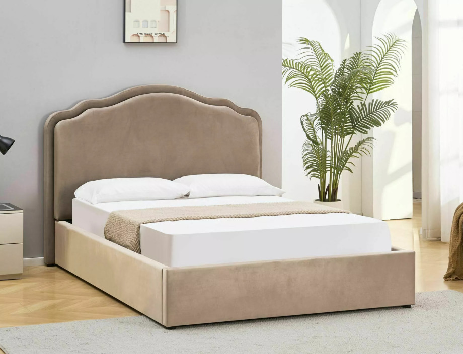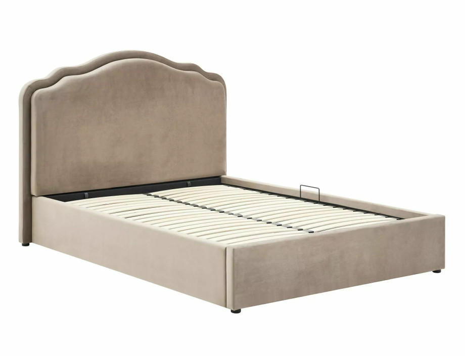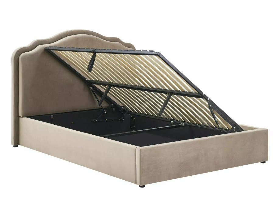 Кровать с местом хранения, бархатная ткань Bluvel, цвет: 40 темно-бежевый. Деревянный рейковый каркас в комплекте. Размер матраса: 160x200 см (цена без матрасов). Боковой каркас - универсальная сборка, открывающиеся слева/справа боковины, газовые подъемники. Размеры кровати: