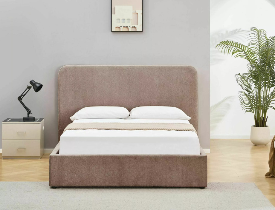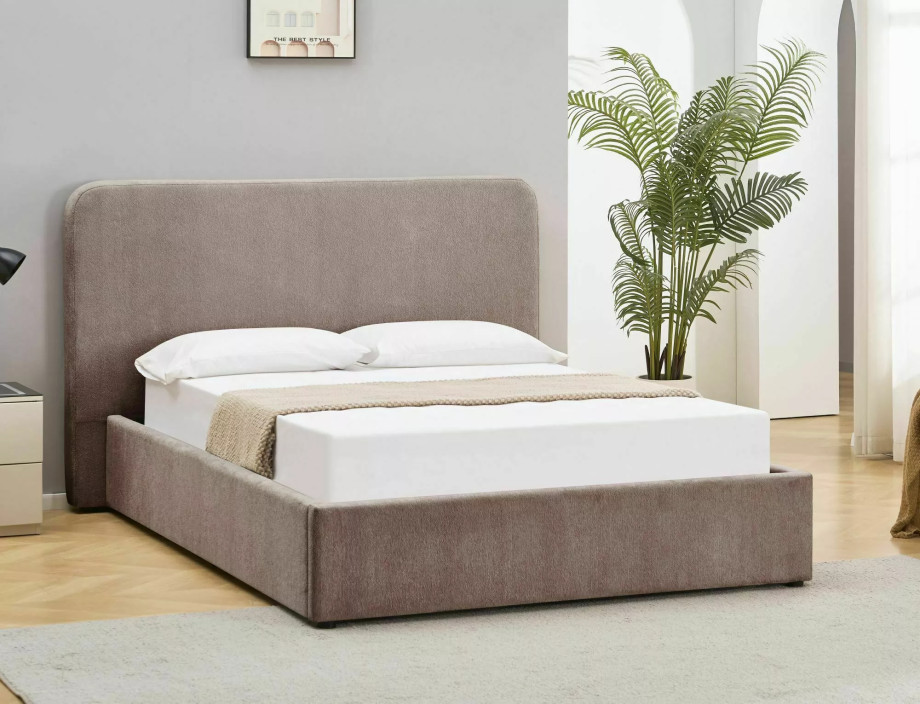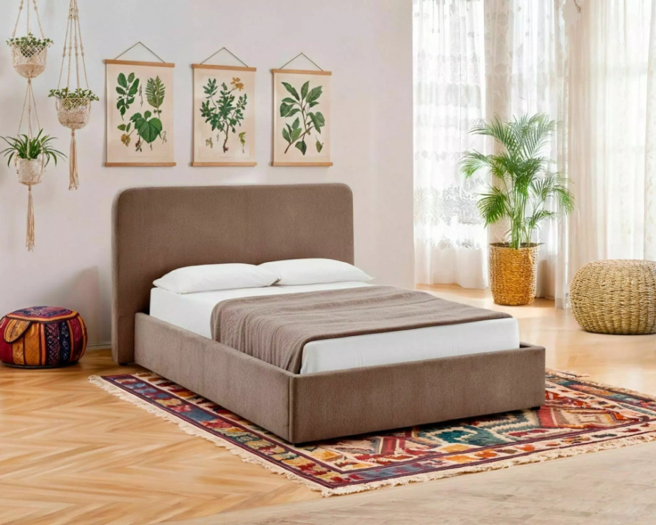 Кровать двухспальная мягкая Lumia Raven 140×200 Темно-бежевая ткань
