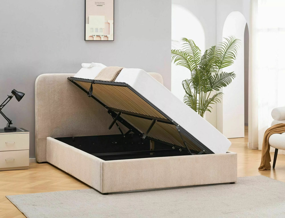 Кровать двухспальная мягкая Lumia Raven 160×200 Бежевая ткань