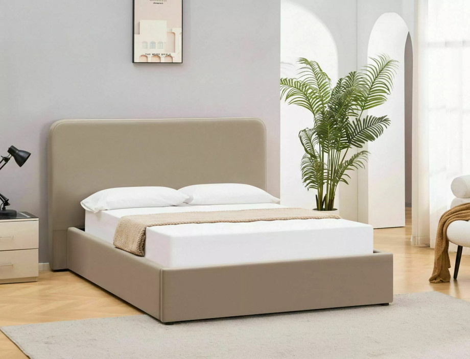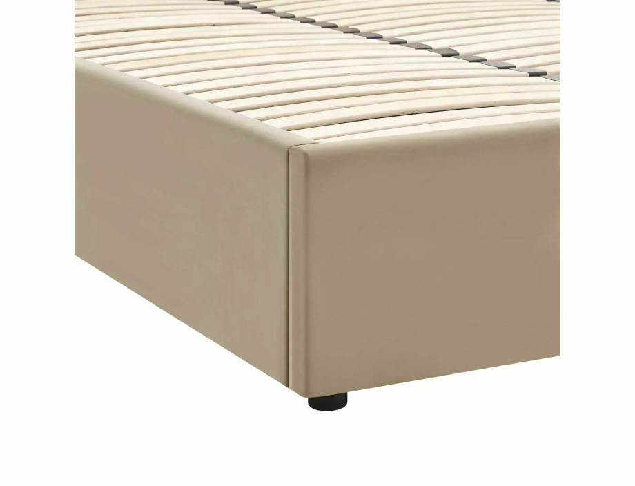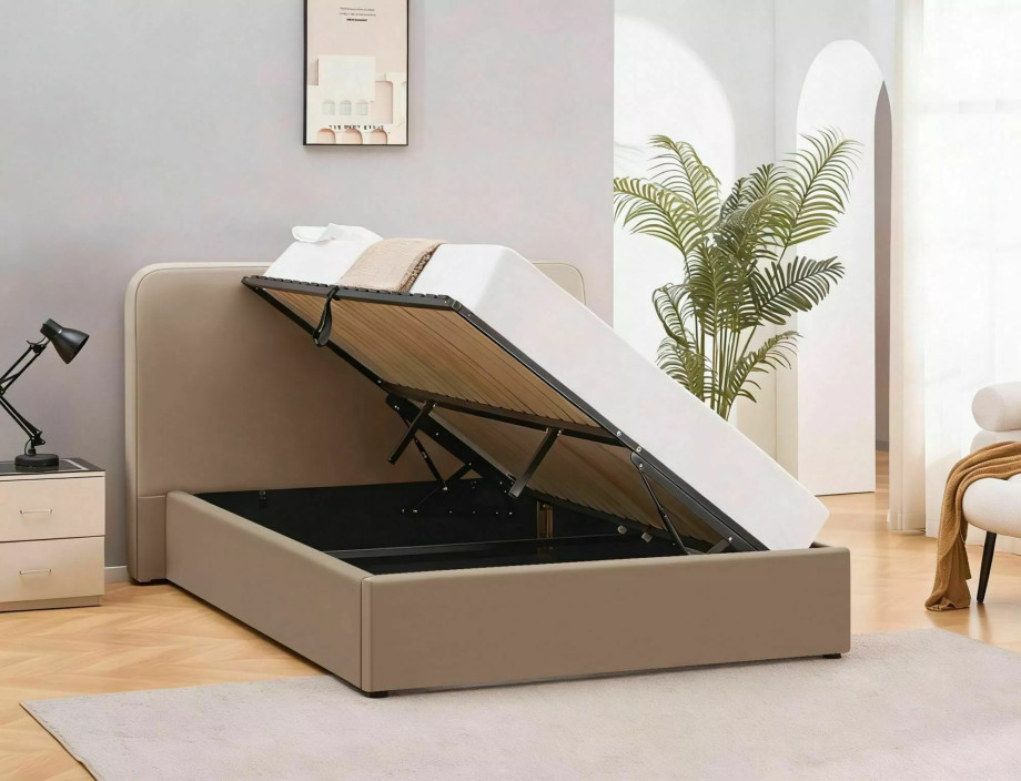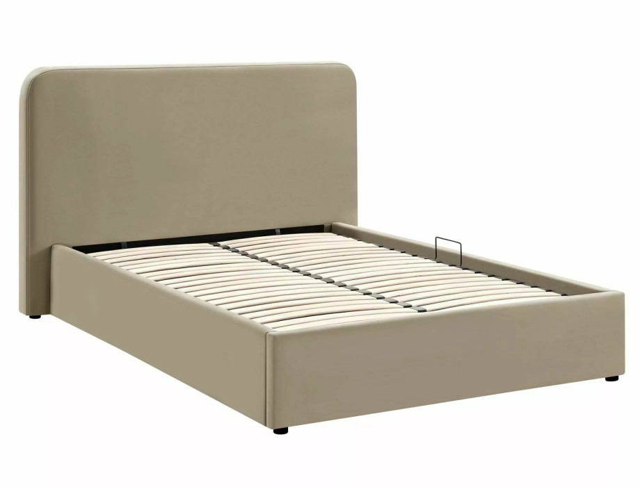 Кровать с местом хранения, бархатная ткань Bluvel, цвет: 40 темно-бежевый. Деревянный рейковый каркас в комплекте. Размер матраса: 140x200 см (цена без матрасов). Боковой каркас - универсальная сборка, открывающиеся слева/справа боковины, газовые подъемники. Размеры кровати: