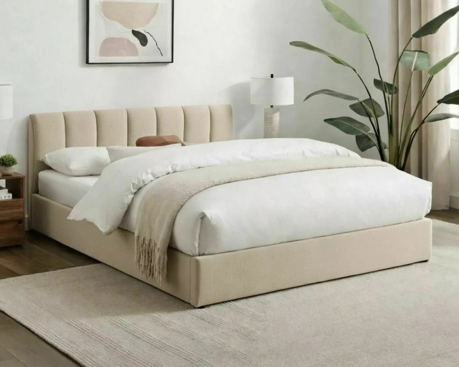 Кровать с местом хранения, ткань Raven, цвет: 22 светло-бежевый. Деревянный рейковый каркас в комплекте. Размер матраса: 120x200 см (цена без матрасов). Газовые лифты. Примечание: место для хранения с мягким полом. Размеры кровати: