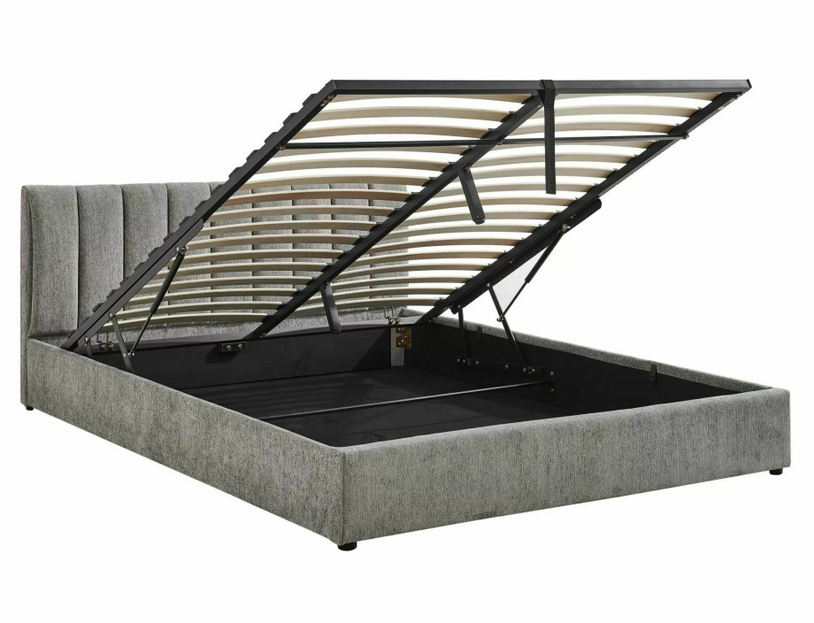 Кровать с местом хранения, ткань Raven, цвет: 07 серый. Деревянный рейковый каркас в комплекте. Размер матраса: 160x200 см (цена без матрасов). Газовые лифты. Примечание: место для хранения с мягким полом. Размеры кровати:
