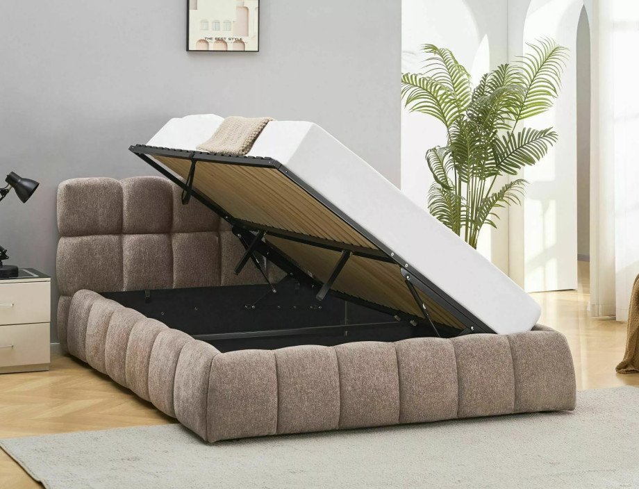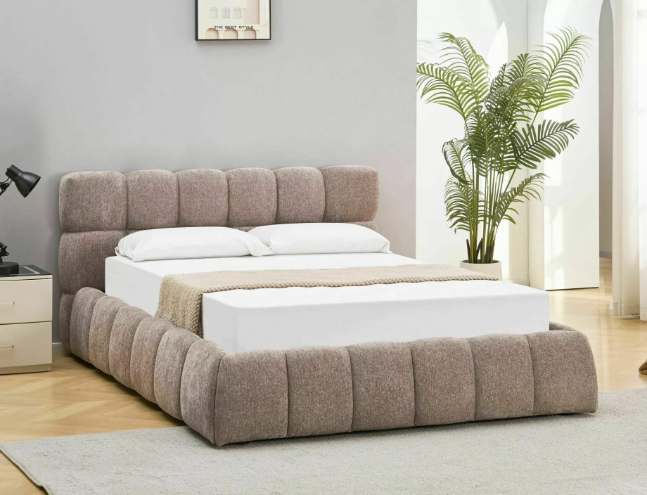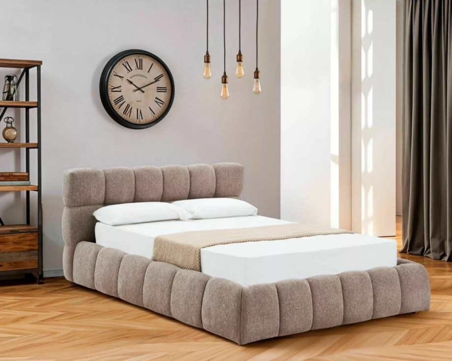 Кровать двухспальная мягкая Parma Raven 140×200 Темно-бежевая ткань