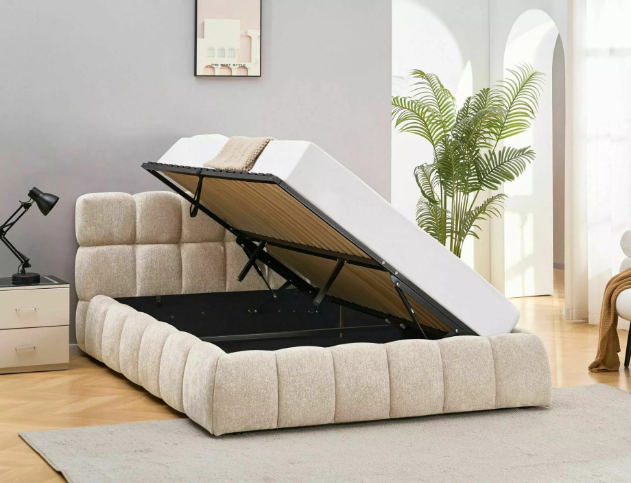 Кровать двухспальная мягкая Parma Raven 160×200 Бежевая ткань