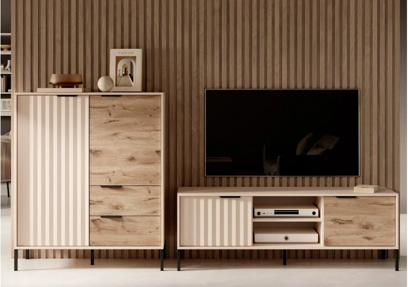 Представляем вам современное и элегантное решение для вашего интерьера – в цвете беж/викинг. Этот мебельный комплект станет идеальным дополнением вашей гостиной или комнаты отдыха, сочетая в себе функциональность и стиль. Благодаря стильному дизайну и качественным материалам, эта стенка создает уют и комфорт, а также подчеркивает вашу индивидуальность.
