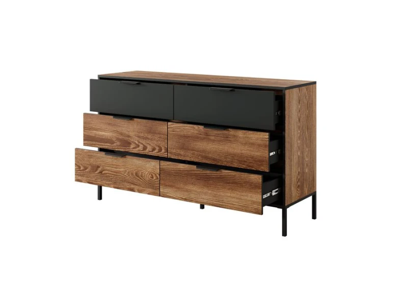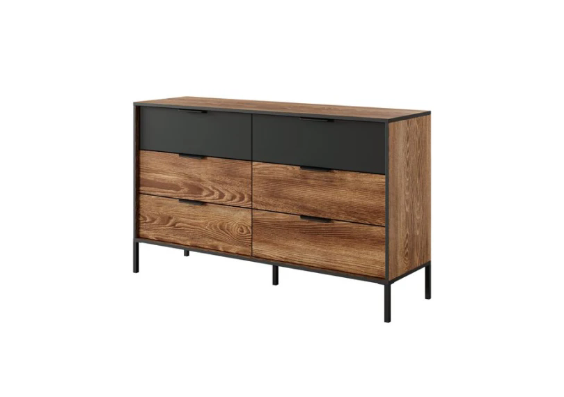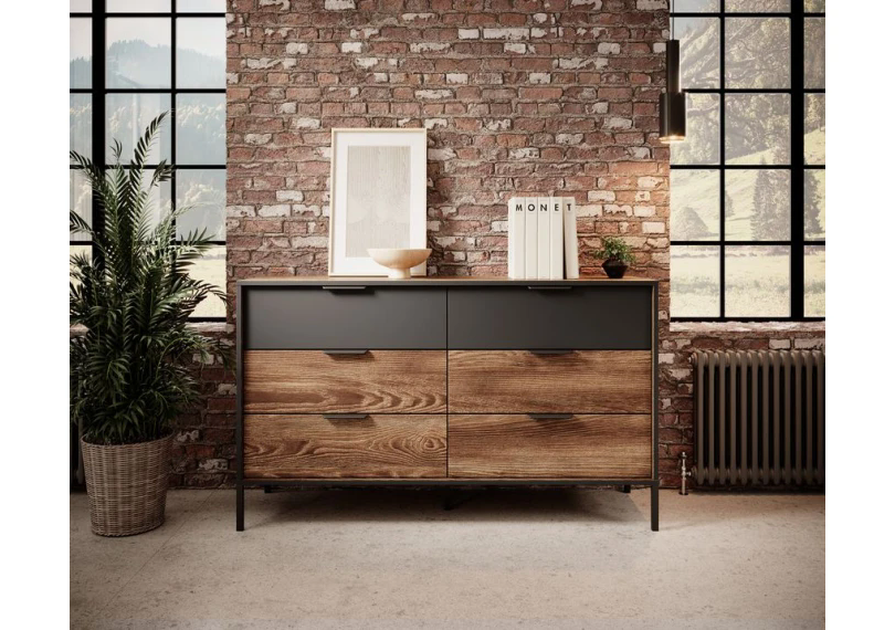 Комод Мілтон / Milton з 6 шухлядами 6S/138 в кольорах каштан та антрацит – це елегантний та функціональний елемент меблів, який впишеться в будь-який класичний або кантрі стиль інтер'єру. Завдяки своїм розмірам та вмістким шухлядам, цей комод стане чудовим рішенням для зберігання білизни, одягу та різноманітних дрібниць, при цьому підкреслюючи стиль вашої спальні.