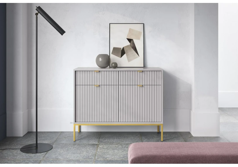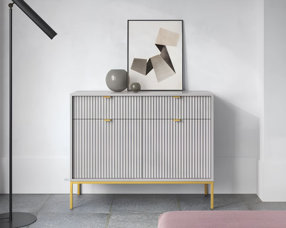 Представляем вашему вниманию комод Нова - стильное решение для хранения, которое сочетает в себе современный дизайн и функциональность. Этот 2-дверный мебельный элемент с двумя ящиками станет отличным дополнением к вашему дому, обеспечивая удобство в организации пространства. Золотые ножки и элегантный серый цвет подчеркивают его современный стиль и делают комод идеальным выбором для любителей Лофт-дизайна.