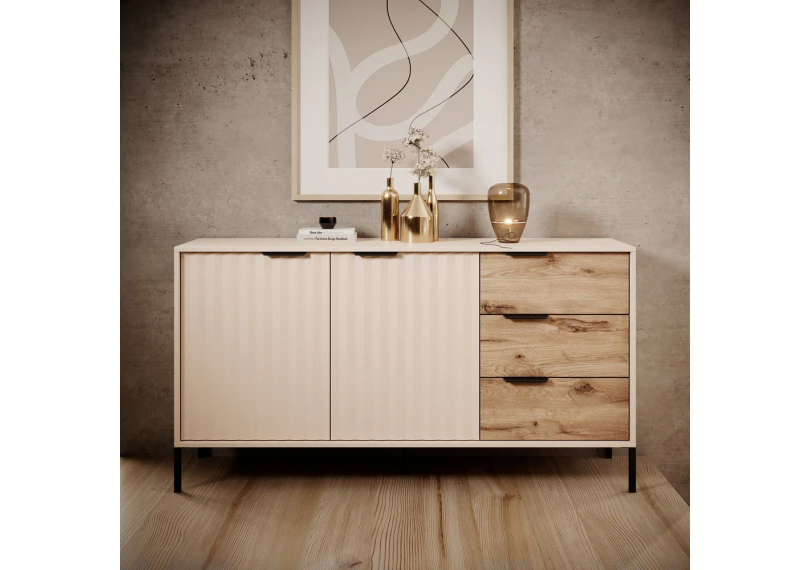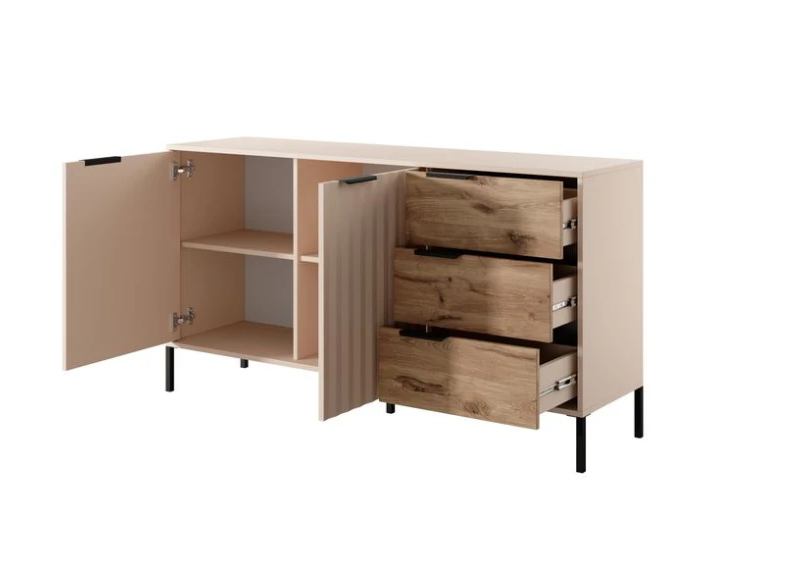 Предлагаем вашему вниманию стильный и практичный комод, идеальный для хранения белья и разнообразных вещей. Модель Rave 2-дверный с тремя ящиками не только дополнит ваш интерьер, но и обеспечит удобство и организованность. Его основное преимущество — сочетание современного дизайна в бежевом цвете с высокой функциональностью.