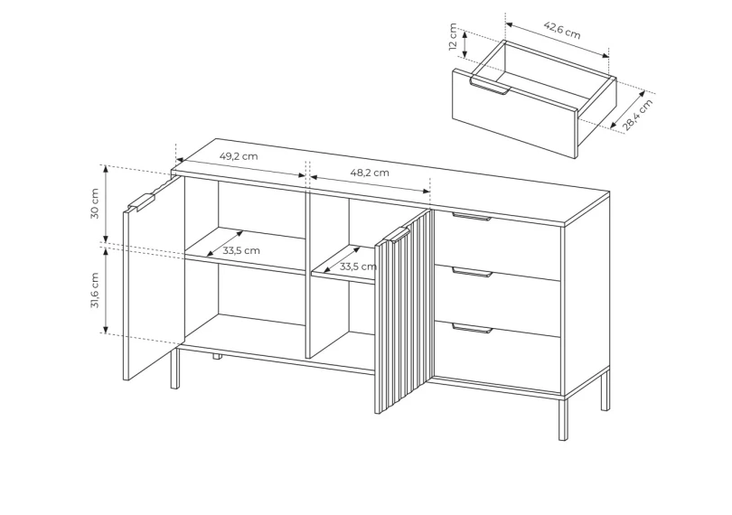 Комод Rave 2D3S станет безусловным акцентом в вашем доме, благодаря усовершенствованной конструкции, которая включает в себя металлические ножки и современные материалы. Он поставляется в комплекте с четкой инструкцией для легкой сборки, что делает его идеальным выбором для любого интерьера.