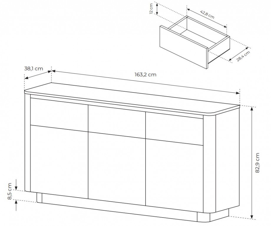 Характеристики Комод Торро / Torro 3D3S/163 3-дверный с 3 ящиками Дуб кремона/черный