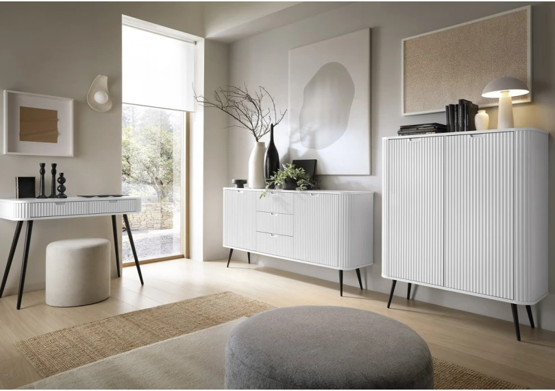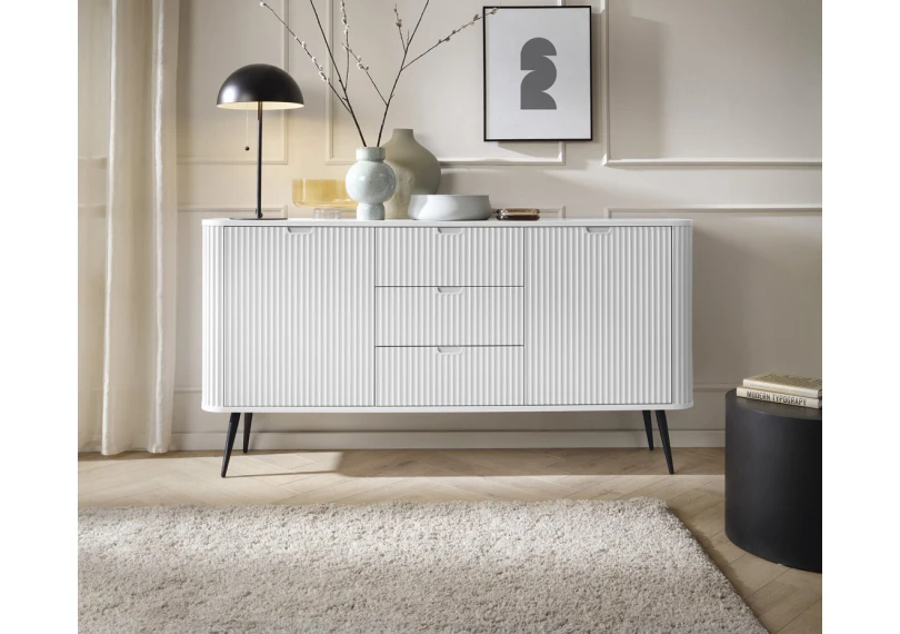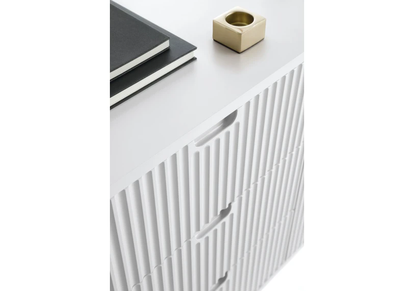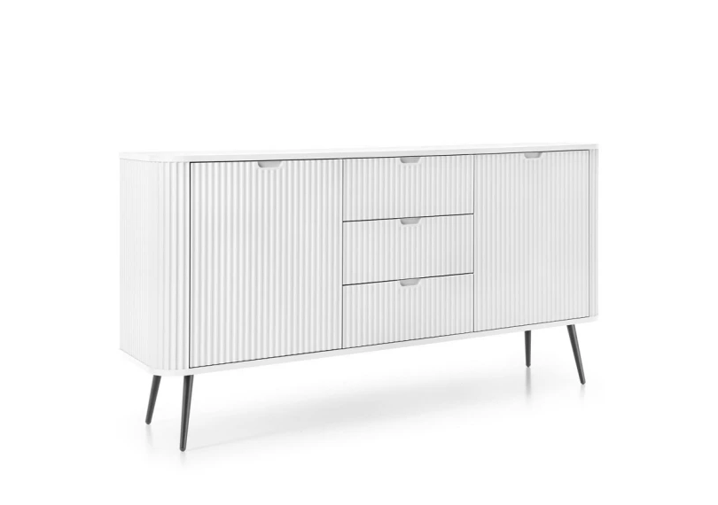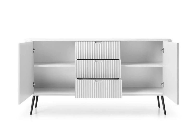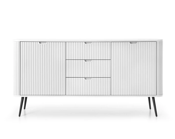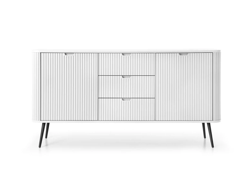 Створіть неповторний стиль у вашій оселі з сучасним комодом Zova. Цей 2-дверний меблевий елемент з 3 шухлядами виглядає елегантно та функціонально, ідеально підходить для зберігання постільної білизни або додаткових речей. Білий колір надає легкості та свіжості, а чорні ніжки додають акценту, підкреслюючи сучасний виклад меблів у стилі лофт.