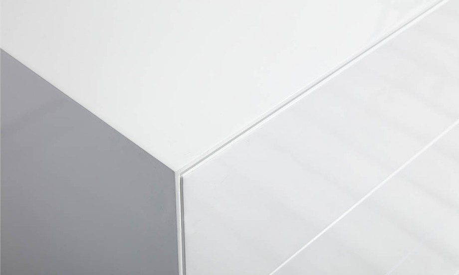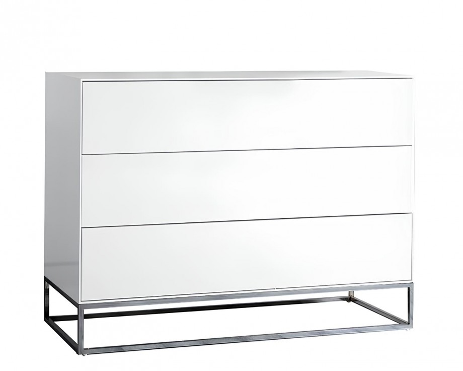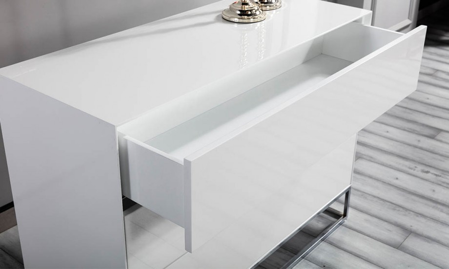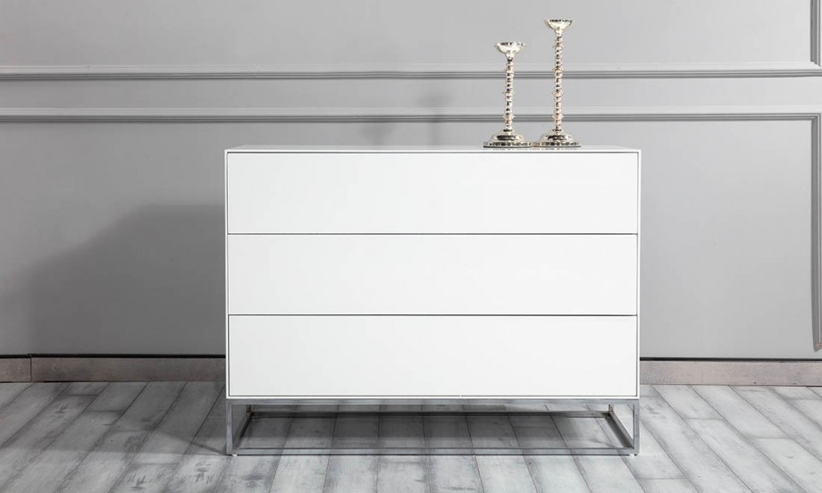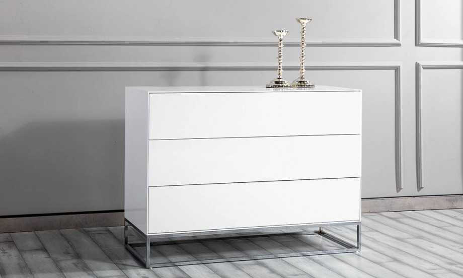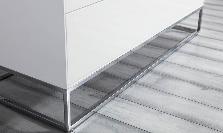 18мм МДФ крашенный, глянцевый, база - хромированный металл. 3 выдвижных ящика, механизм push-to-open с доводчиком, бренд Samet, Турция