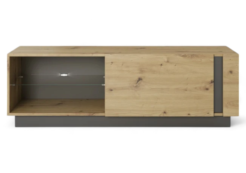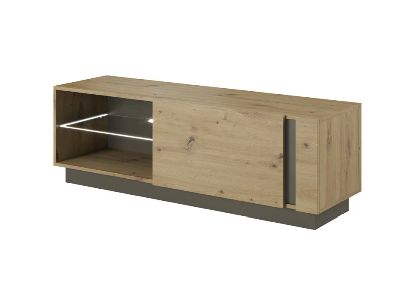 Тумба под телевизор Арко / Arco 1-дверная 1D/138 в цвете дуб артизан и графит станет идеальным дополнением для любой современной гостиной. Этот мебельный предмет не только выполняет функцию установки телевизора, но и является отличным аккумулятором энергии вашего интерьера благодаря своему элегантному дизайну в стиле минимализма. Ее основное преимущество – это практичность, которая сочетается со стильным видом, который дополнит любой стиль декора.