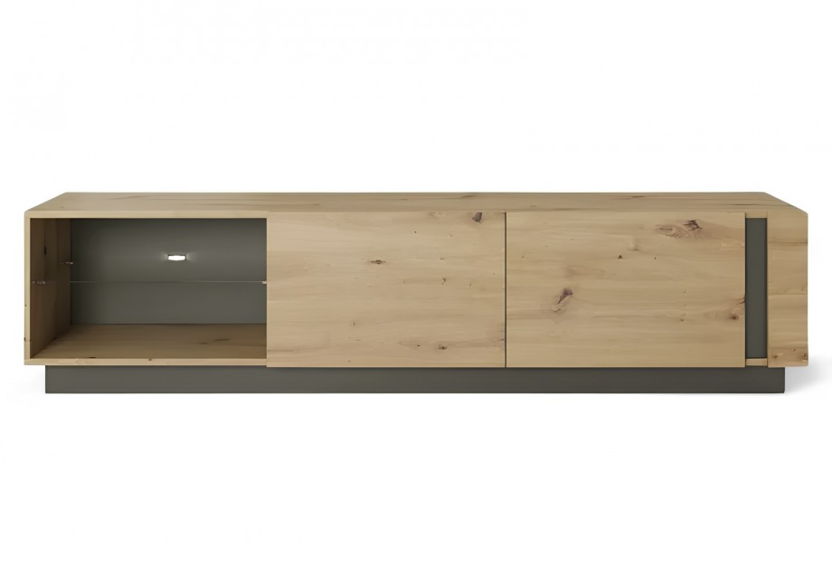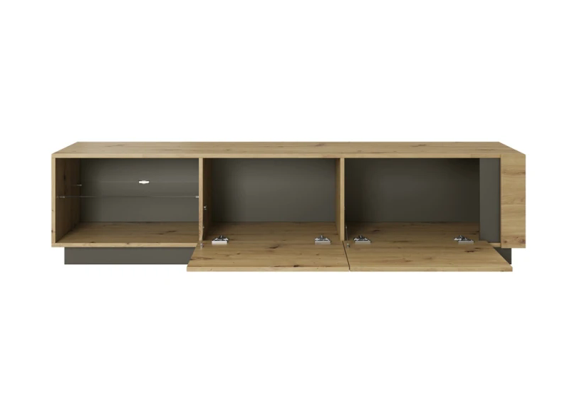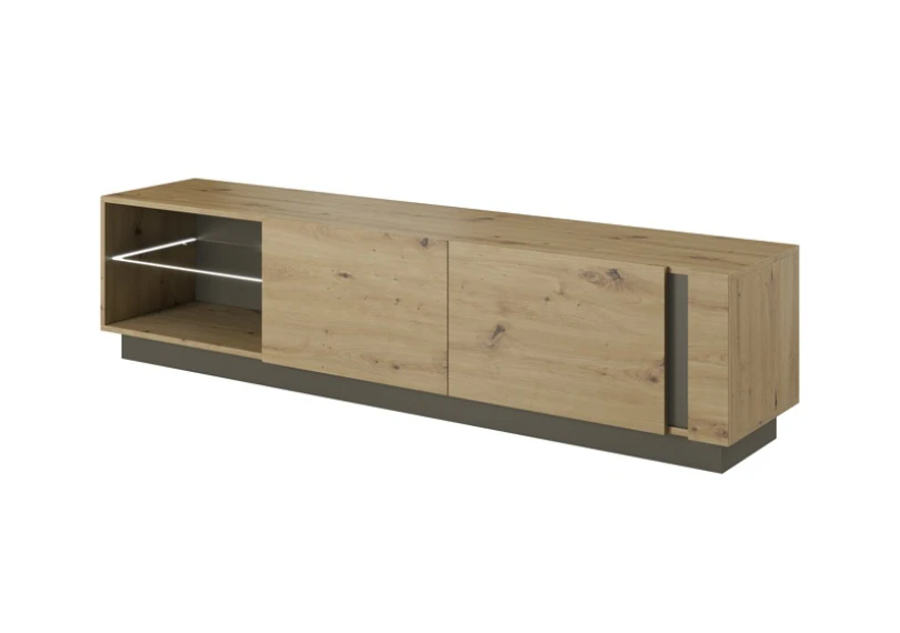 Тумба под телевизор в современном дизайне Арко / Arco 2-дверная 2D/187 (Дуб артизан/графит) - это идеальное решение для вашей гостиной, которое сочетает в себе элегантность и практичность. Благодаря своим размерам, эта мебель станет чудесным фоном для больших телевизоров, а её стильный вид подчеркнёт современный интерьер. Основное преимущество данного изделия - его функциональность, ведь тумба имеет две открытые полки для техники и два удобных отделения с дверцами для хранения аксессуаров и медиа.