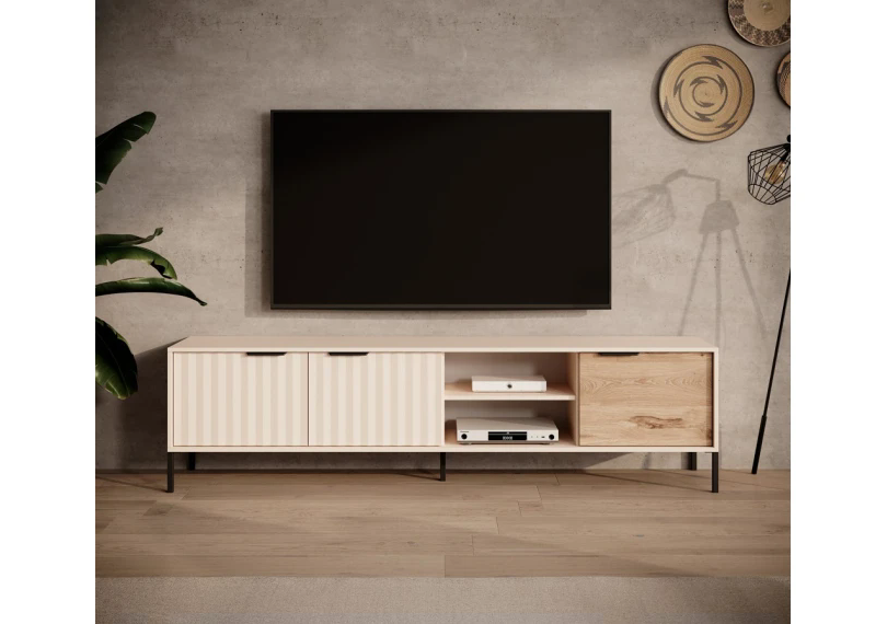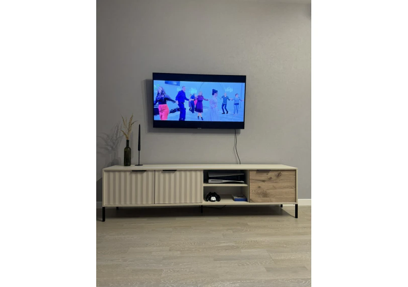 , которая станет идеальным дополнением вашего интерьера. Этот мебельный аксессуар изготовлен в современном скандинавском стиле и предлагает эффективное решение для размещения телевизора, приставок, колонок и другой техники. Основное преимущество тумбы заключается в её элегантном дизайне и практичности.Основные характеристики:Эта