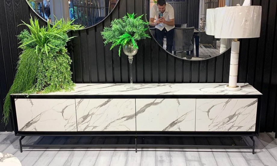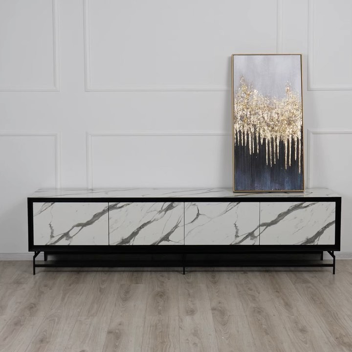 Современная тумба под телевизор в белом мраморном цвете гармонично дополнит любой интерьер. Глянцевая поверхность придает изделию особую привлекательность и изысканность. Благодаря хорошо продуманной форме она не занимает много пространства и удобна в использовании. Металлический каркас делает конструкцию устойчивой и надежной. Внутреннее пространство создан для хранения различных вещей и предметов личного пользования. HPL – это декоративный ламинат, со стандартными или постформинг свойствами, изготавливаемый толщиной в диапазоне от 0,50мм до 1,20мм, с широким выбором листов различных размеров и различных типов поверхностей. Производится путем пропитки бумаги с различными свойствами и последующей выдержкой в течении 60-70 минут при температуре 160˚C, под давлением 100–120кг/м². Благодаря своей поверхности с непористой структурой, которая достигается вследствие воздействия высокого давления и высокой температуры, данный продукт препятствует образованию бактерий.