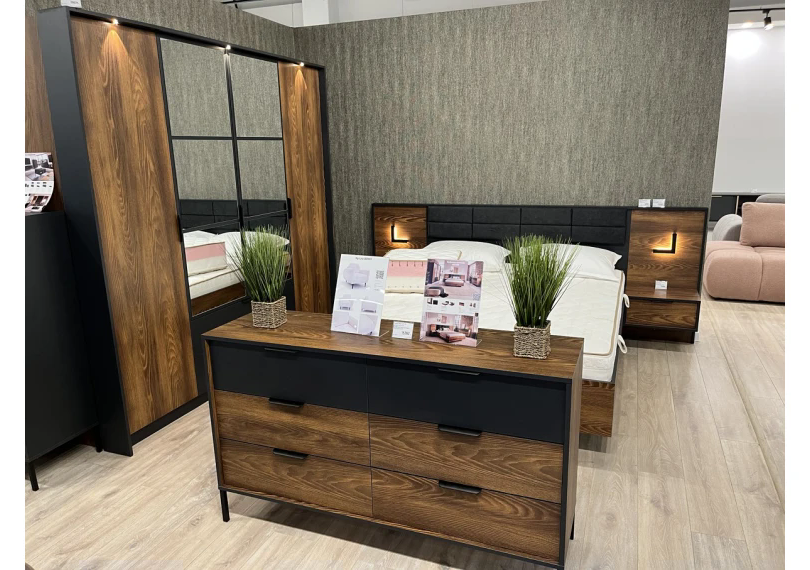 в кольоровій гамі каштан/антрацит. Цей стильний комплект створений для тих, хто цінує поєднання класичного та кантрі стилів. Головна перевага цього набору - це зручність та можливість створення індивідуального простору для відпочинку, обираючи компоненти, що найкраще підходять саме вам.Основні характеристики:До комплекту входять ліжко (каркас) двоспальне, комод, а також тумби приліжкові з LED підсвіткою. Цей набір дозволяє змінювати комплектацію на ваш розсуд, створюючи ідеальну спальню для вашого комфорту. Оберіть