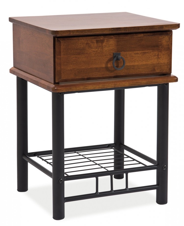 Прикроватная тумбочка из антикварной вишни ET-747 от Signal - практичный предмет мебели в каждой спальне. Он позволяет отложить книгу, поставить прикроватную лампу или другие мелочи. Кроме того, это очень красивый элемент декора, выполненный в классическом стиле, он добавит спальне изысканной элегантности. Имеется небольшой, но вместительный ящик и полка под ним. Прикроватная тумбочка изготовлена из малазийского дерева в сочетании с черными металлическими ножками.