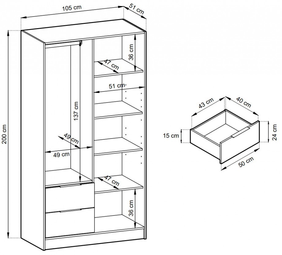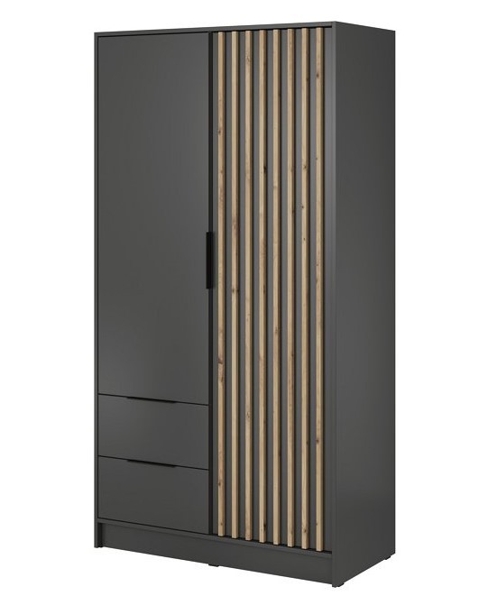 . Не упустите возможность обустроить свое пространство стильно и удобно с шкафом Нелли!Шкаф для одежды Нелли / Nelly 2D 2-дверный Графит/дуб артизан - это идеальное решение для удобного хранения вашей одежды. Изготовленный из качественных материалов, он сочетает в себе современный и скандинавский стиль, что добавляет элегантности любому интерьеру. Основное преимущество этого шкафа заключается в его функциональности и возможности оптимально использовать пространство, ведь он оснащен двумя дверями и вместительными ящиками.