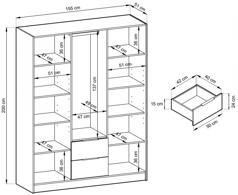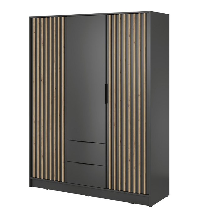 Шкаф для одежды Нелли / Nelly 3D 3-дверный Графит/дуб артисана - это стильное и функциональное решение для хранения вашей одежды. Благодаря своему оригинальному дизайну в цветах графит и дуб артисана, он прекрасно впишется в любой интерьер, придавая ему современный вид. Основное преимущество этого шкафа заключается в его просторном внутреннем объеме, который позволяет удобно хранить не только одежду, но и дополнительные аксессуары.
