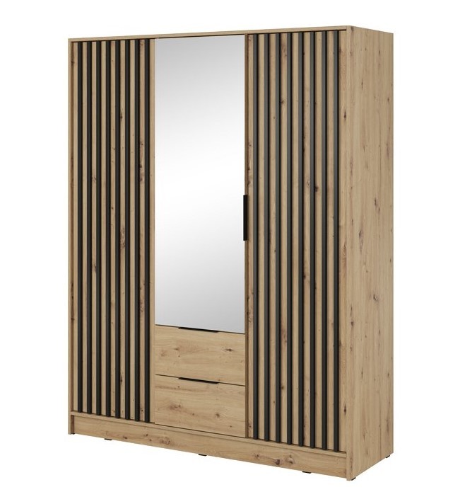 Шкаф для одежды Нелли / Nelly 3D 3-дверный с зеркалом Дуб артиссан/черный — это идеальное решение для Вашего дома, сочетая элегантный дизайн и функциональность. Созданный из качественных материалов, этот шкаф не только организует Ваши вещи, но и станет стильным акцентом в вашей комнате. Основное преимущество модели — это большое зеркало, которое визуально расширяет пространство и позволяет удобно проверить свой образ перед выходом.