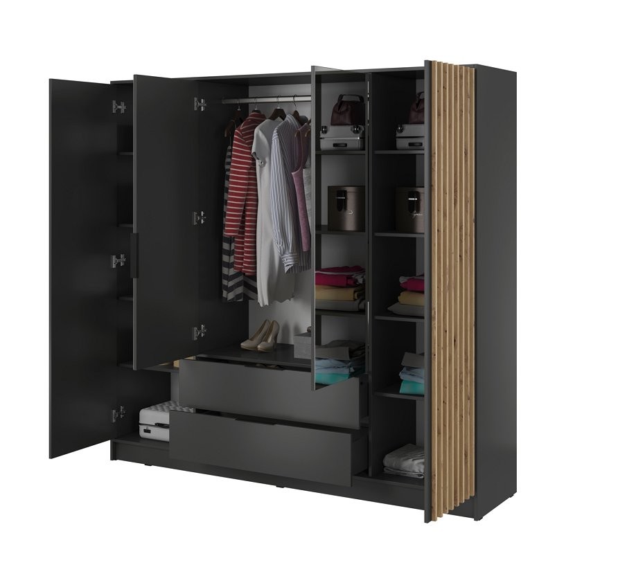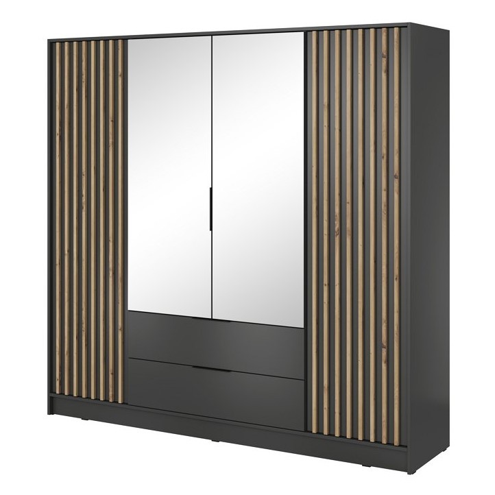 Ищете идеальное решение для хранения своей одежды? Шкаф для одежды Нелли / Nelly 4D — это отличный выбор, который сочетает в себе стиль, функциональность и качество. Благодаря своему современному дизайну в цветовой гамме Графит/дуб артисана, этот шкаф станет не только практичным элементом, но и эстетическим дополнением к любому интерьеру. Основное преимущество данной модели — это четыре двери, которые обеспечивают удобный доступ к содержимому, а также большое зеркало, которое визуально увеличивает пространство в комнате.