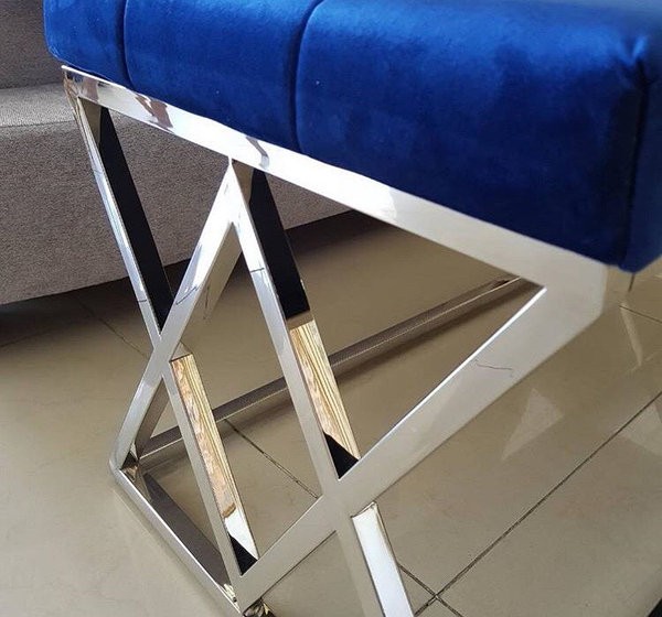 Скамья Elixa - это особое предложение для гостиной, столовой, спальни или гостиной. Двухместное мягкое сиденье обтянуто мягкой бархатистой тканью темно-синего цвета с декоративной строчкой, которая добавляет стиля. Сиденье опирается на прочный каркас интересной формы из глянцевого хромированного металла, ножки отделаны ножками, защищающими пол от царапин при перемещении скамейки. Модная скамейка, обитая бархатом, - интересный, выразительный элемент декора любой гостиной, холла, офиса или спальни. Особенно рекомендуется для современных интерьеров и гламурных стилей.