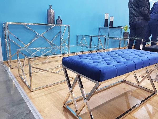 современная скамейка, отделанная бархатом