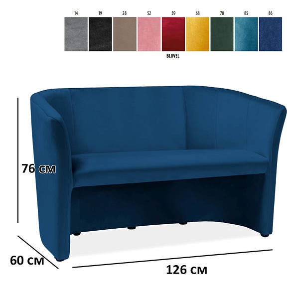 Диван TM-2 Темно-синий от извесной польской мебельной компании Signal. В изделии используються такие материалы как Ткань / поролоновый наполнитель / дерево 100% полиэстер / имитация бархата / плотность ткани 320г / м2 / истираемость ткани >50000 циклов / склонность к пиллингу 4-5класс / цветостойкость 4. Дополнительная информация: номер обивки BLUVEL 86 / Глубина сиденья 47 см / Огнеупорный текстиль . Вся мебель посталяется в оригинальной упаковке. Внутри вложена иструкция по сборке.