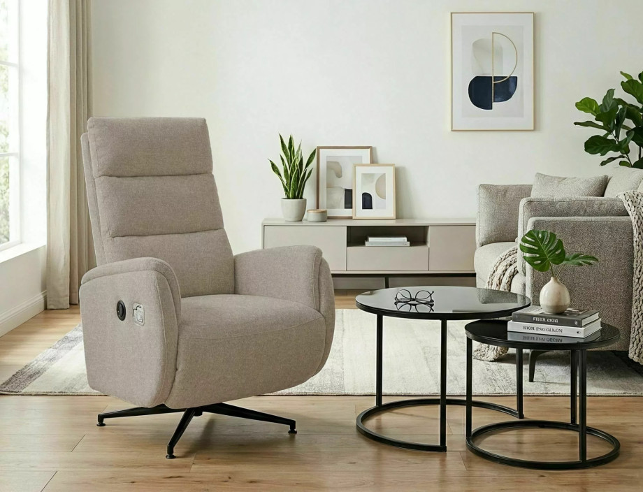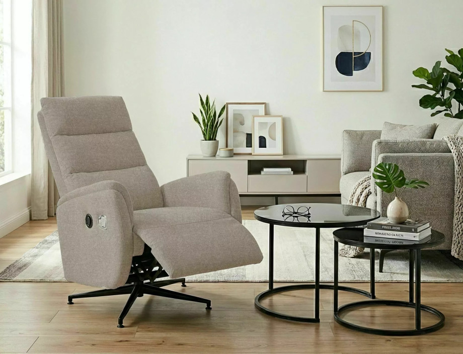 Кресло реклайнер электрическое Fenix Raven Темно-бежевая ткань / Черный каркас