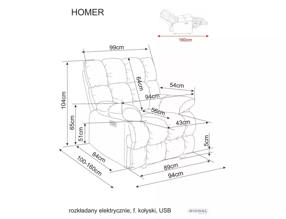 Кресло реклайнер электрическое Homer Raven Капучино ткань / Черный каркас