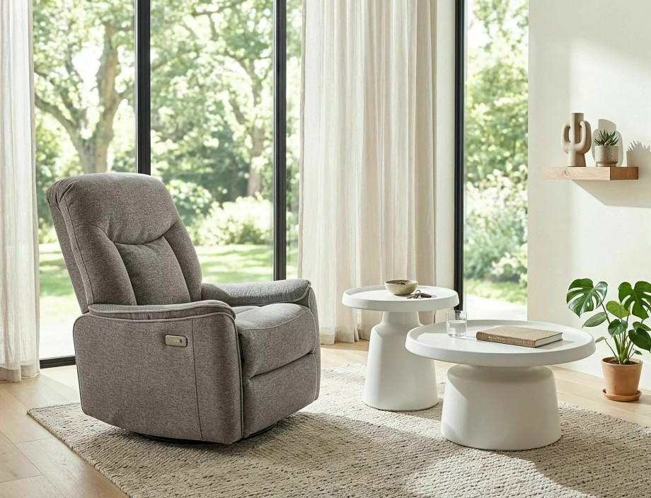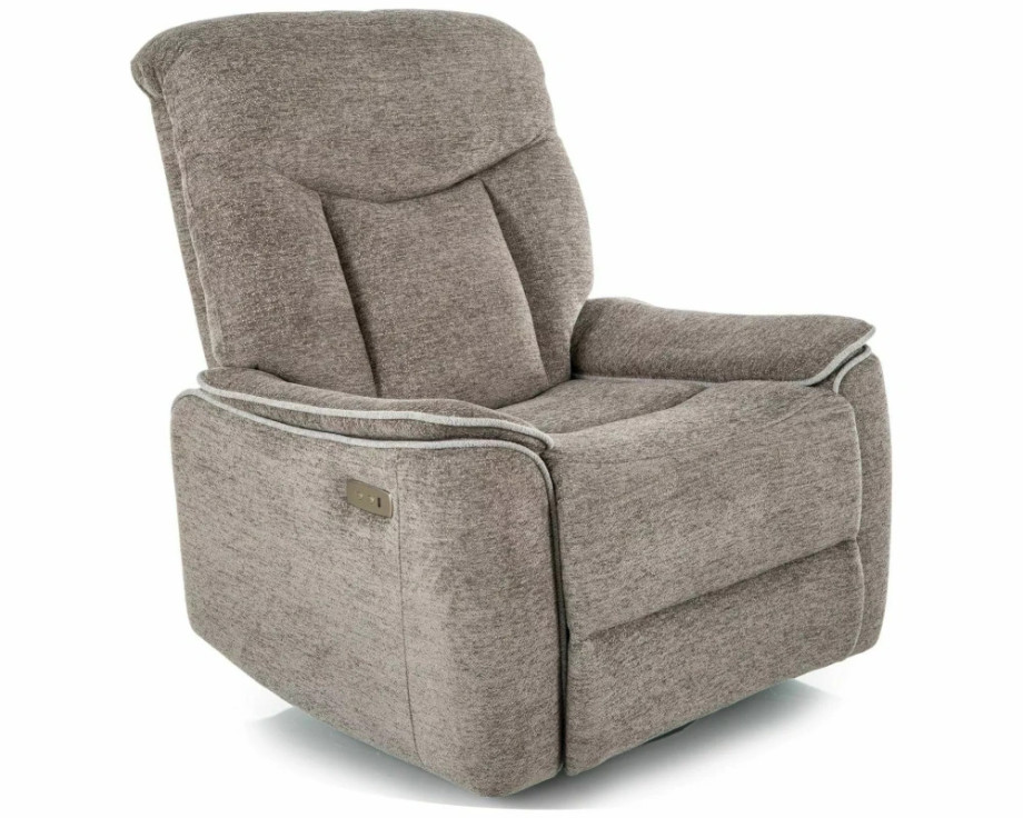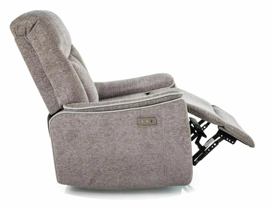 Кресло с электроприводом и функцией качания, ткань: Raven, цвет: серый 07. Сидение, вращающееся на 360 градусов, функция качания работает в сложенном положении, порт USB. Размеры кресла: