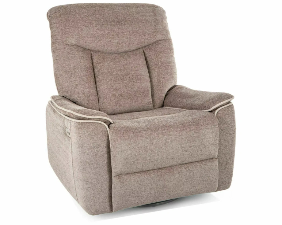 Кресло с электроприводом и функцией качания, ткань: Raven, цвет: темно-бежевый 30. Сидение, вращающееся на 360 градусов, функция качания работает в сложенном положении, порт USB. Размеры кресла: